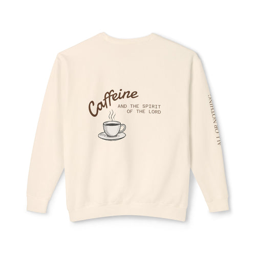 "CAFFEINE AND THE SPIRIT OF THE LORD" Lightweight Crewneck Sweatshirt